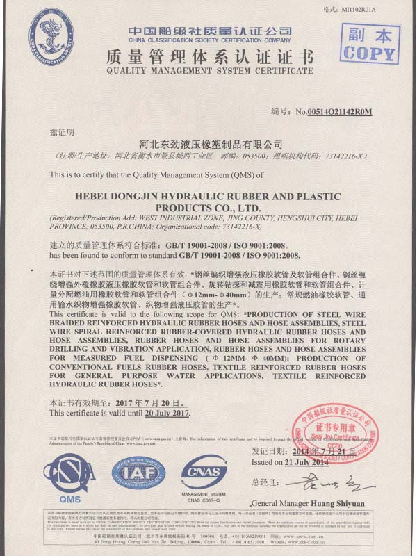 注冊資金7000萬,生產設備300多臺套,檢測設備300多臺件,膠管900萬標米,各類管件接頭2億余件,膠管組合件1億余套。